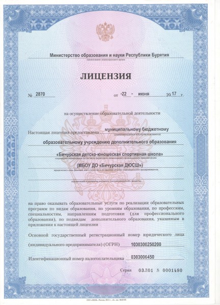Полное наименование образовательной организации* Муниципальное автономное образовательное учреждение дополнительного образования «Бичурская детско-юношеская спортивная школа»