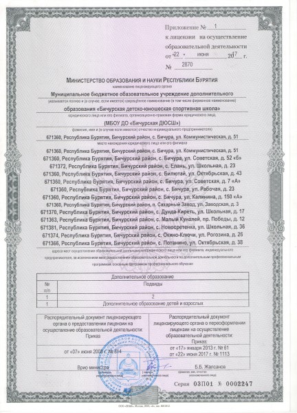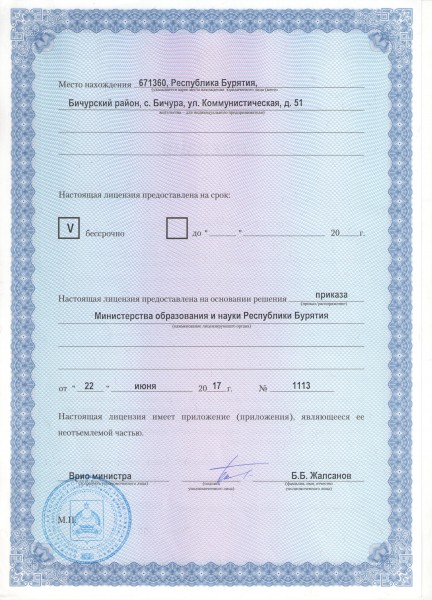 3. 671372, Республика Бурятия, Бичурский район с. Елань, ул. Школьная № 23.